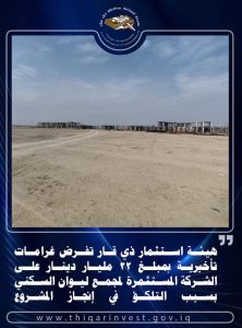 اخبار الهيئة هيئة استثمار ذي قار تفرض الغرامات التاخيرية على المتلكئين بانجاز المشاريع بواسطة قسم العلاقات العامة والاعلام في 16/12/2024 267