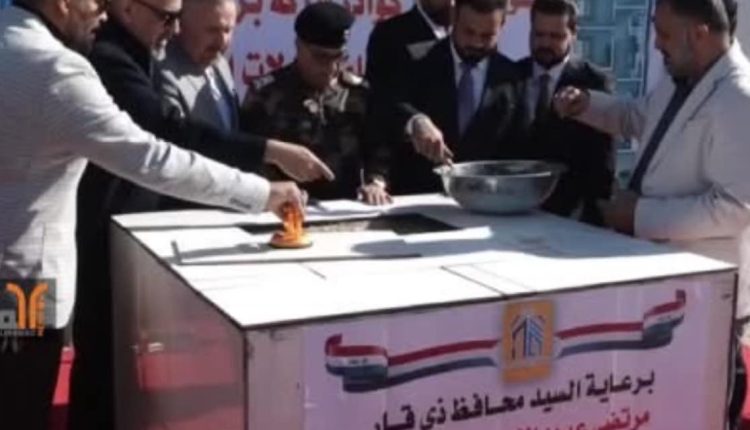 وضع حجر الاساس لمشروع المجمع السكني بمنتسبي قوى الامن الداخلي الحاصل على الاجازة الاستثمارية المرقمة (٣٥٩) الصادرة من هيئة استثمار ذي قار وعلى مساحة ١٠٠ دونم